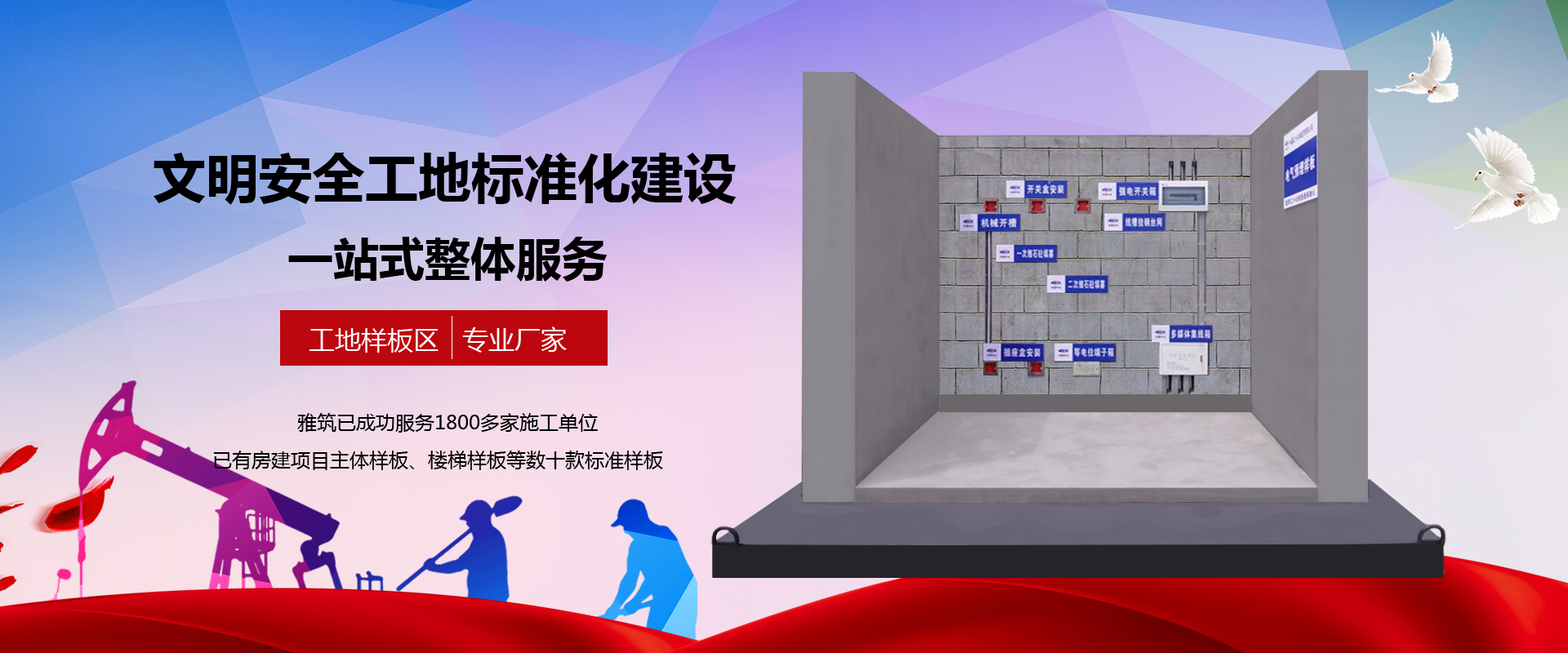 江蘇雅筑建設(shè)科技有限公司一直致力為客戶專業(yè)打造3A、省優(yōu)、魯班獎等文明工地,專業(yè)提供策劃設(shè)計(jì)、產(chǎn)品制造、現(xiàn)場施工一站式解決方案等服務(wù)。